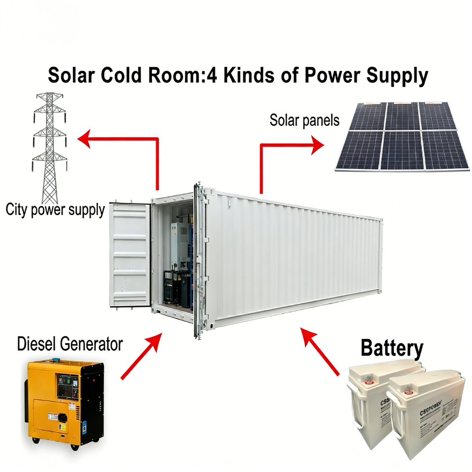 Nom du produit:Chambre froide conteneurisée de 40 pieds à énergie solaire