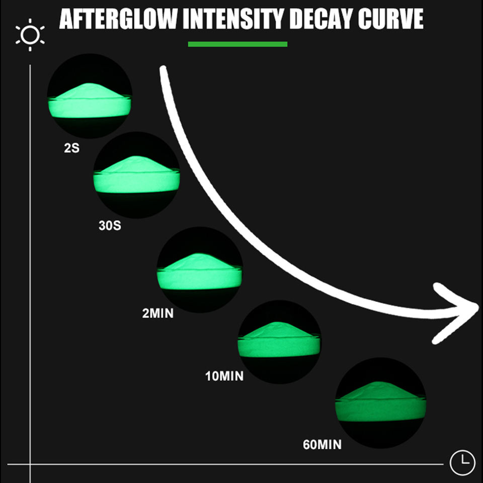 Nom du produit:Poudre photoluminescente pigmentée haute luminance, phosphorescente et sécurisée.