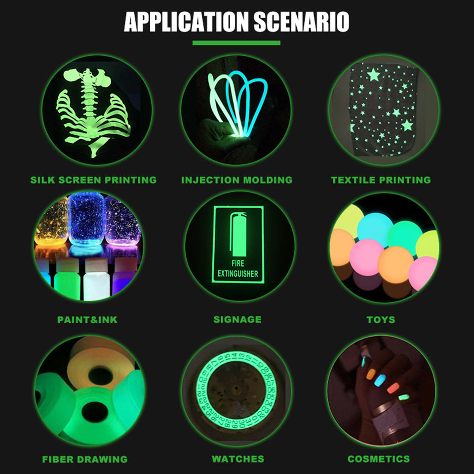 Poudre photoluminescente à haute luminosité, non nocive, à économie d'énergie, qui brille dans le noir, pour la résine plastique, le verre