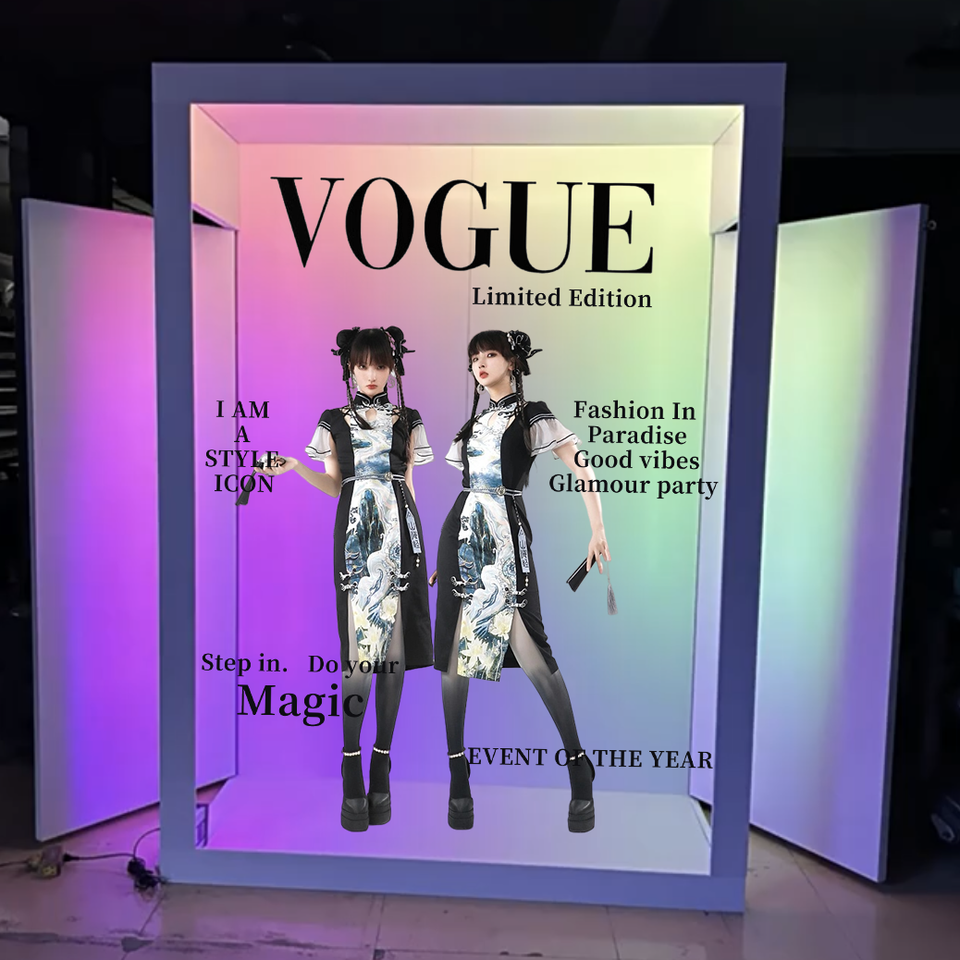 Photomaton LED Économe en Énergie avec Bluetooth, Impression en Libre-Service, Écologique, Compatible iPad/Smartphones pour Événements Intérieurs (3-6 Personnes)