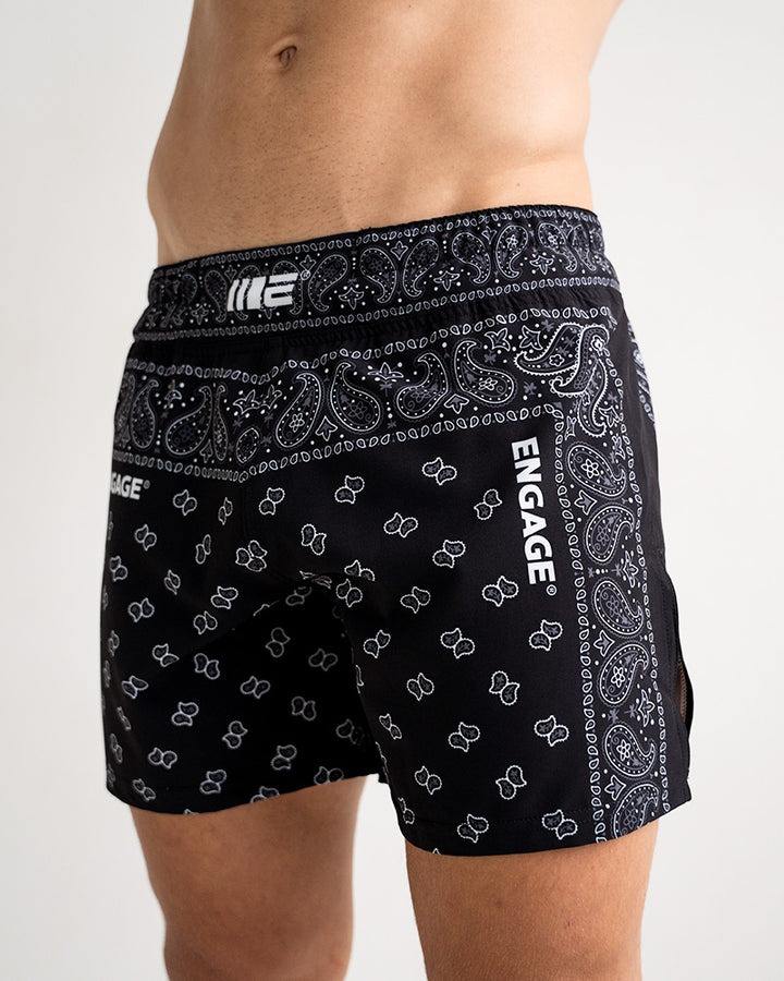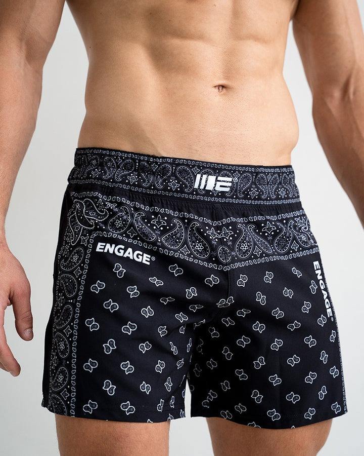 Shorts de combat Engage, coupe classique, coutures robustes, tissu doux, bande large, pour entraînement sportif et sparring, mouvement libre, séchage rapide, extensible