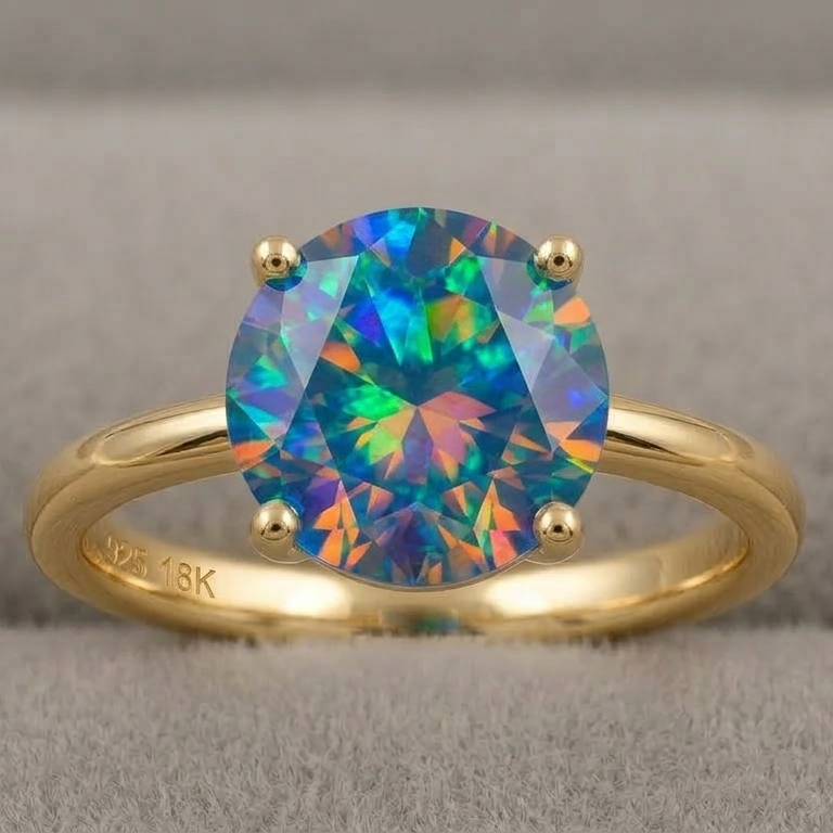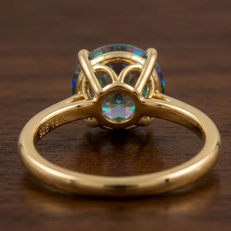 Bague de fiançailles 10 mm avec CZ, argent sterling 925 plaqué or 18 carats, 8g, bijoux fins à prix de gros