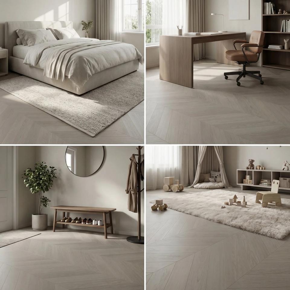 Parquet d'ingénierie, Motif en arête de poisson multicouche en bois dur