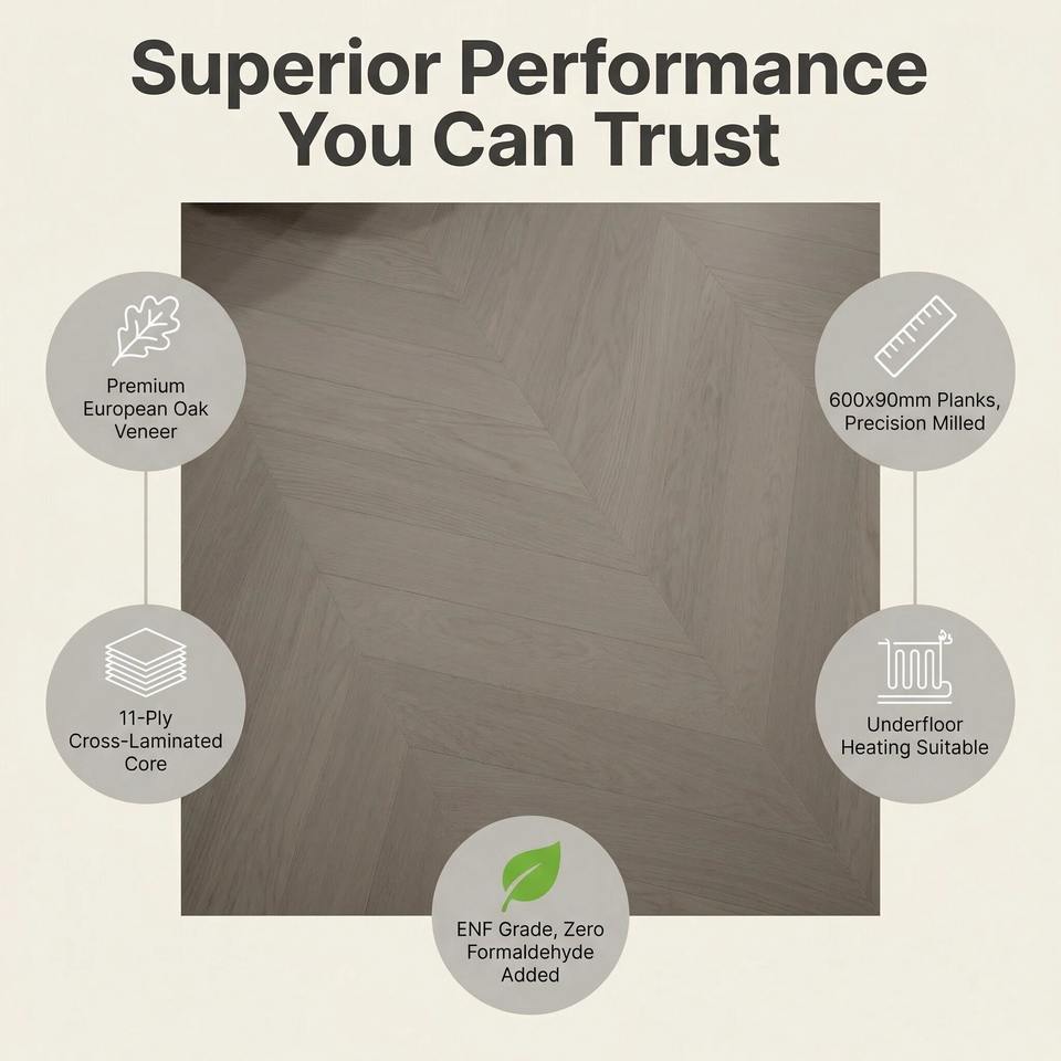 Type de produit:Parquet d'ingénierie, Motif en arête de poisson multicouche en bois dur