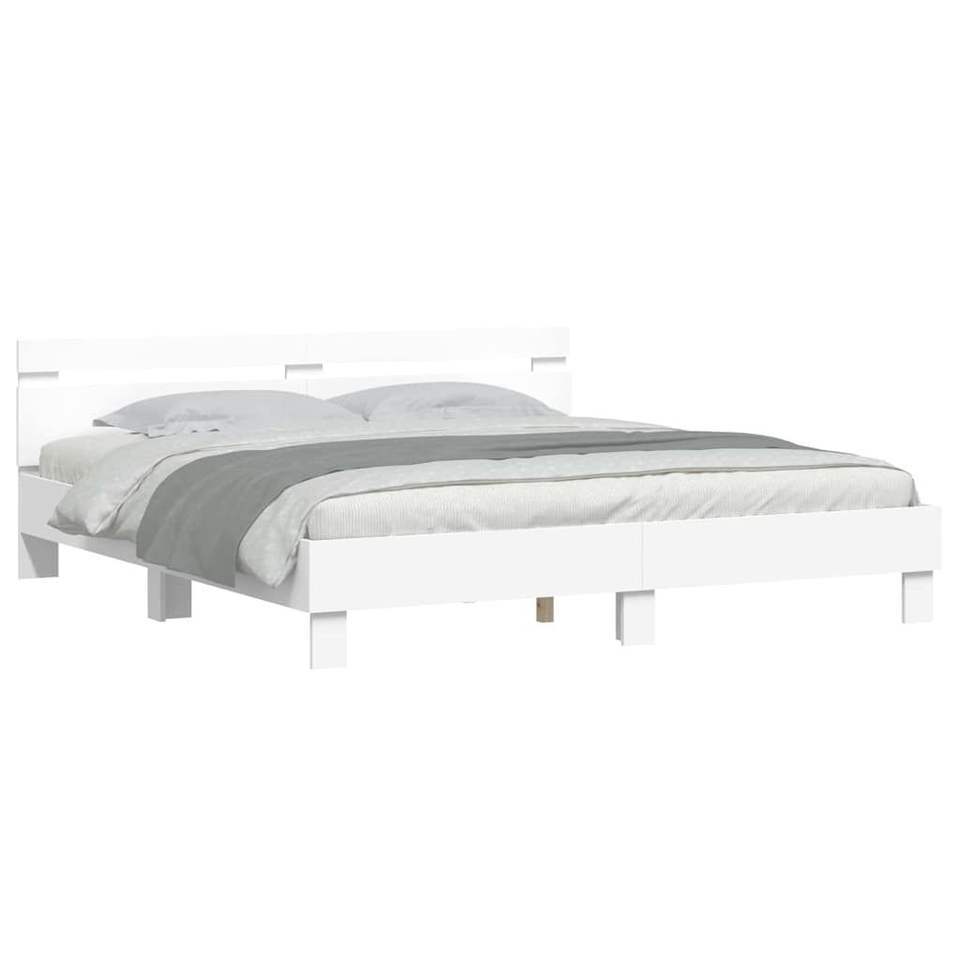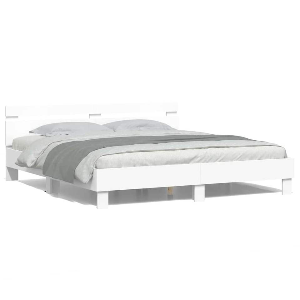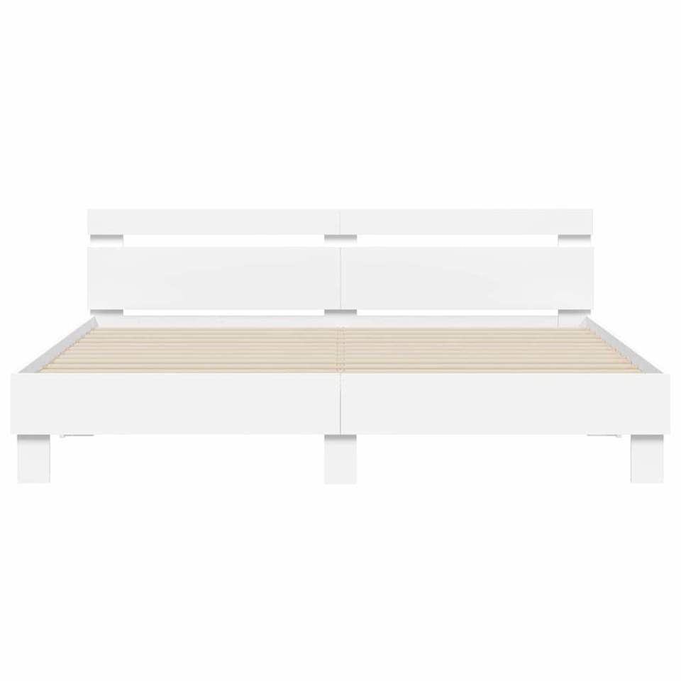 Cadre de lit en bois d'ingénierie avec éclairage LED 75,98 x 79,92 po en métal blanc