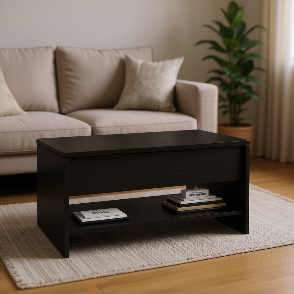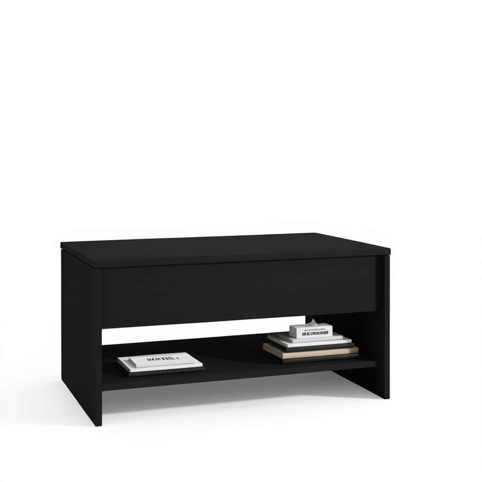 Table basse en bois d'ingénierie 31,5x19,7x15,7 noire avec rangement, mobilier moderne pour salon
