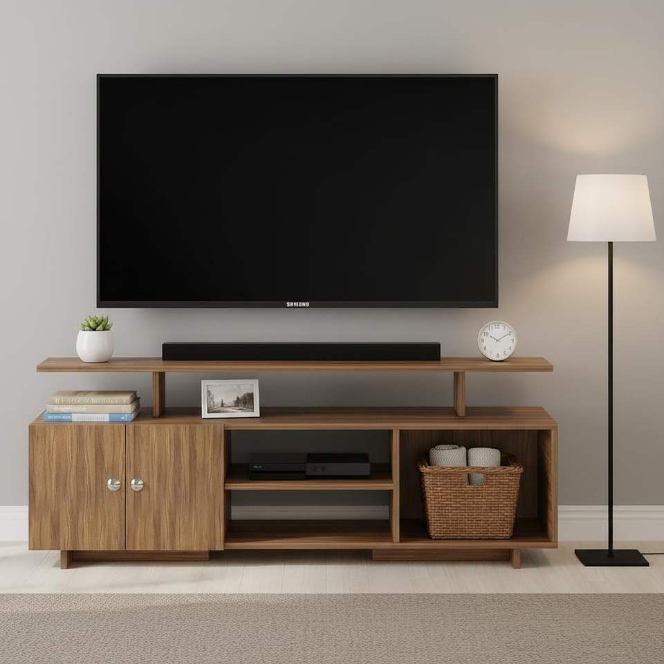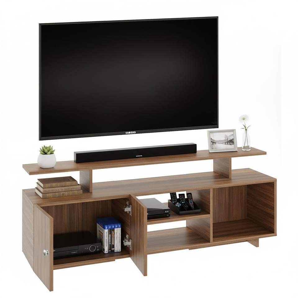 Meuble TV en bois d'ingénierie, meuble TV sur pied avec étagères de rangement pour salon, TV Stan, teck exotique