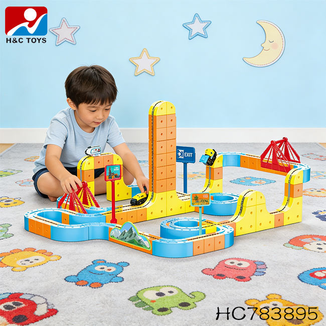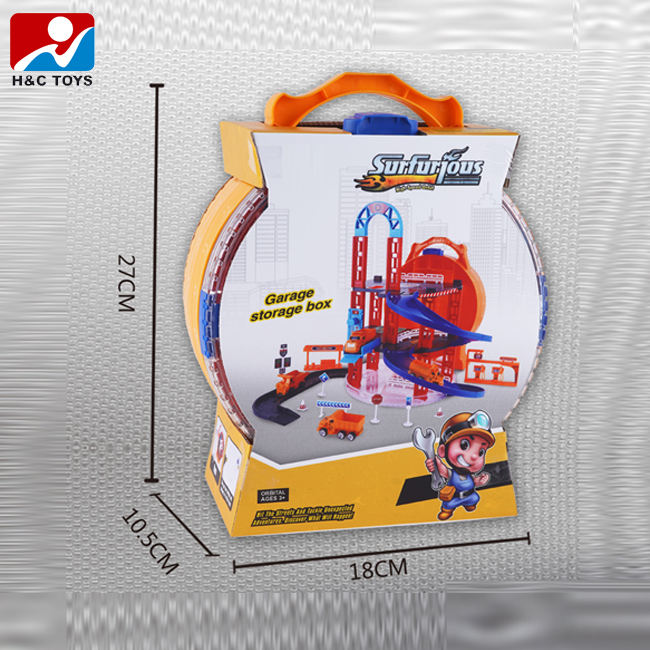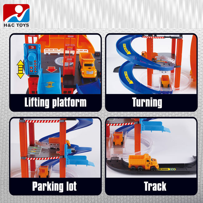 Parc de stationnement simulé pour véhicules d'ingénierie avec plateforme élévatrice, conception de piste spirale, jouet de piste pour enfants