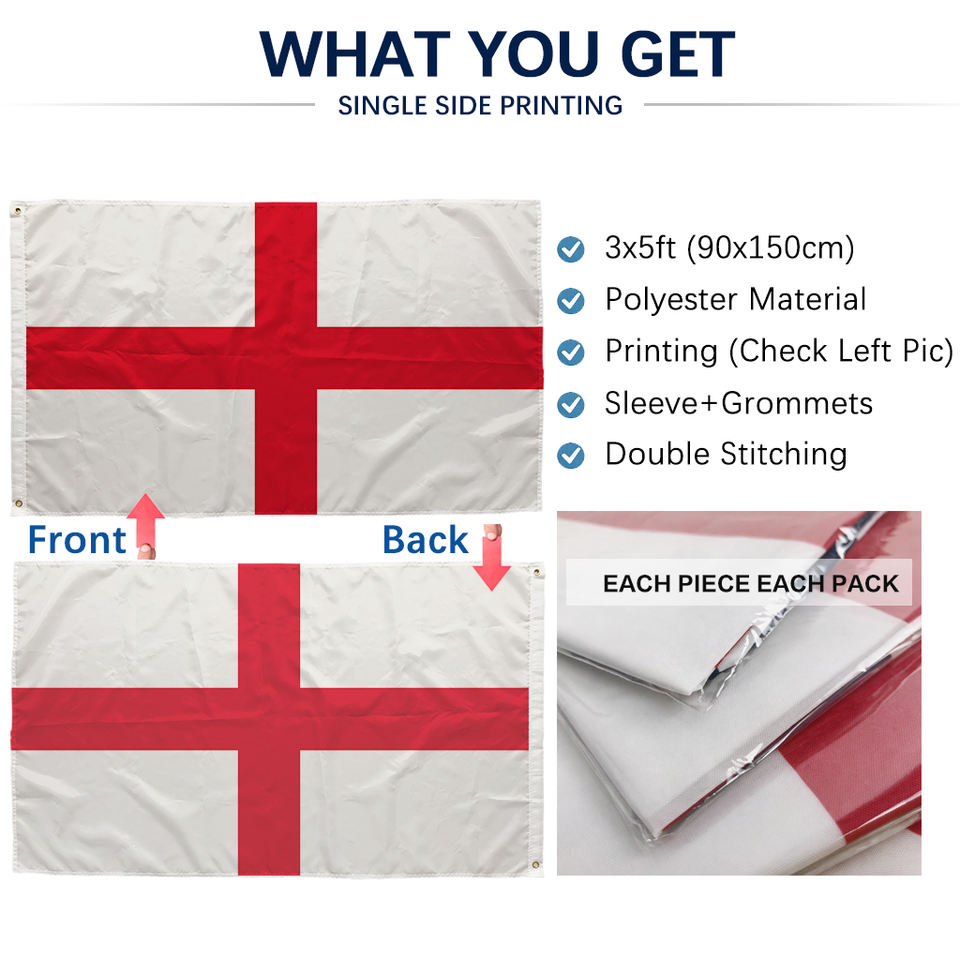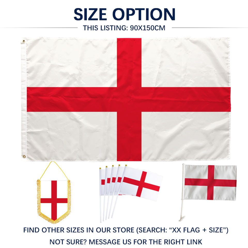 Drapeau de l'Angleterre 3x5 pieds en polyester, impression recto, œillets en laiton, double couture, vente en gros, 3x5 90x150cm, drapeau de la croix de Saint-Georges