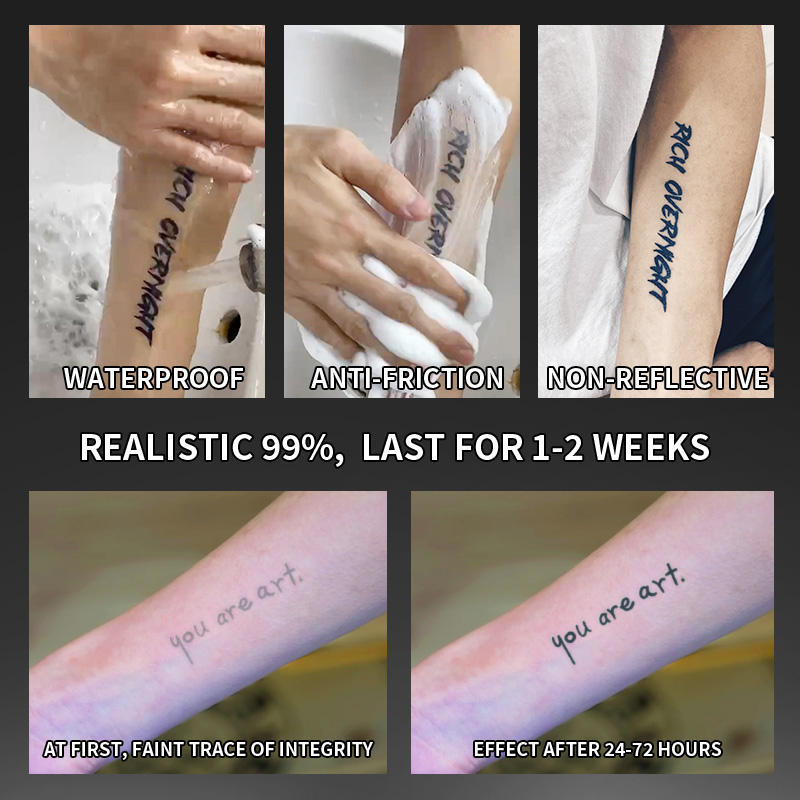 Lettrage artistique anglais Tatouage temporaire Tatouage semi-permanent Imperméable pour 2 semaines Tatouage réaliste à base de plantes pour le corps