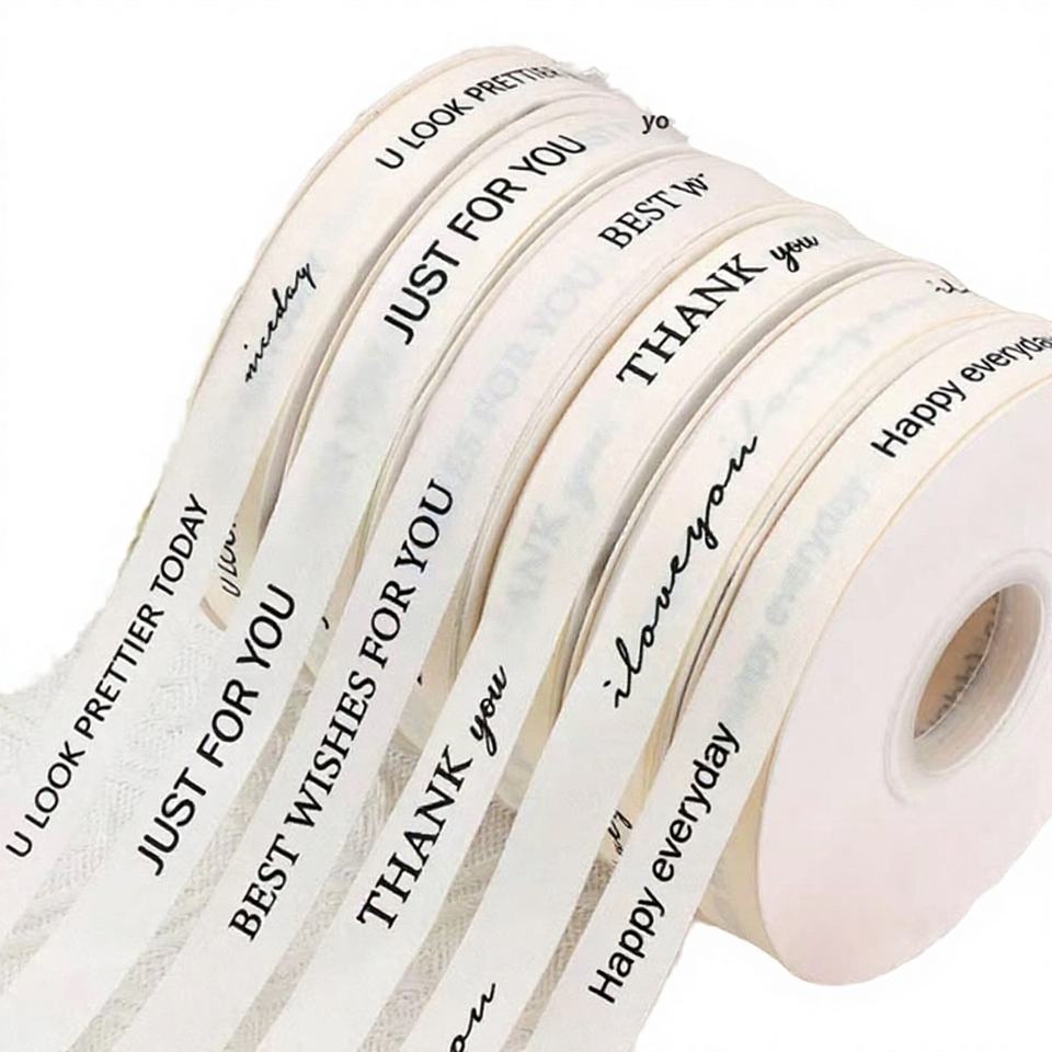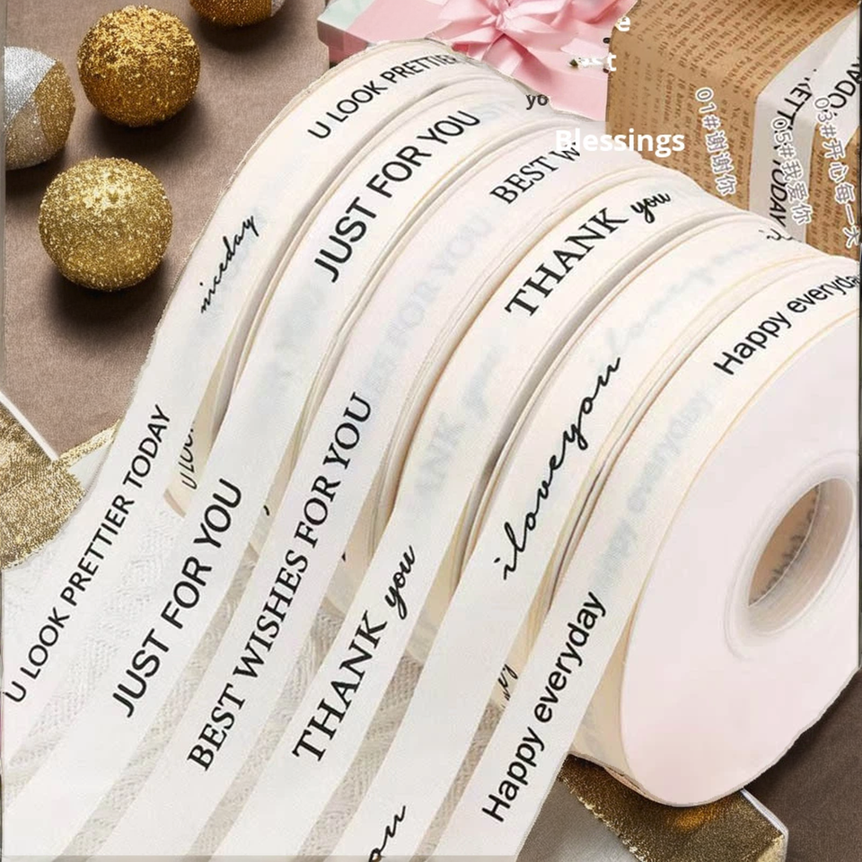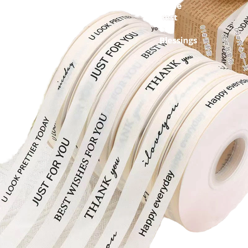 Ruban en coton avec impression de texte en anglais pour la décoration de gâteaux d'anniversaire et l'emballage de cadeaux, bobine de ruban