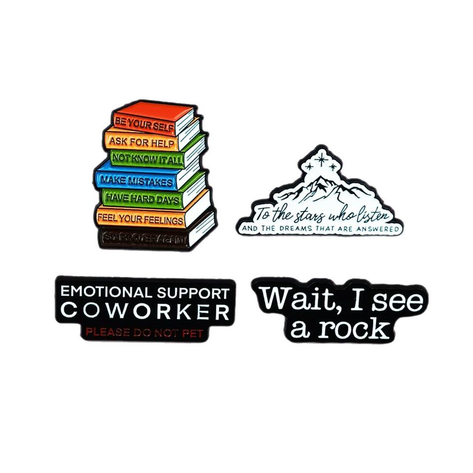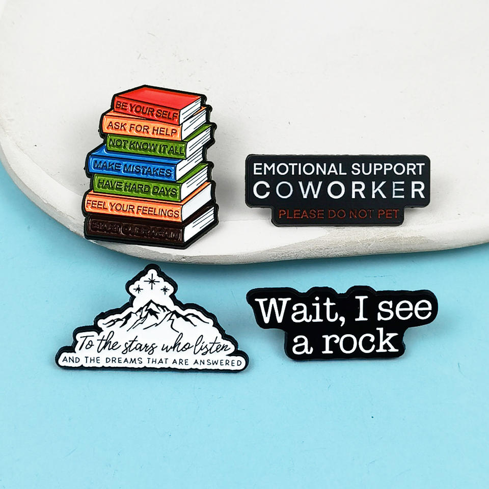 Broche en métal avec lettres anglaises, design créatif livre et sommet de montagne, accessoire décoratif pour sac à dos et vêtements