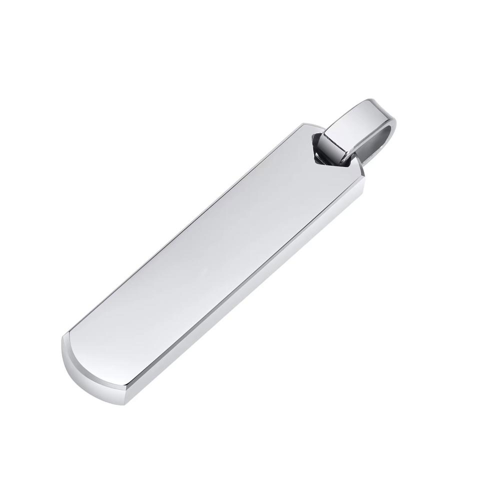 Pendentif Gravable Nom Géométrique en Forme de Barre Longue Tridimensionnelle, Simple, en Acier Inoxydable, Collier pour Homme