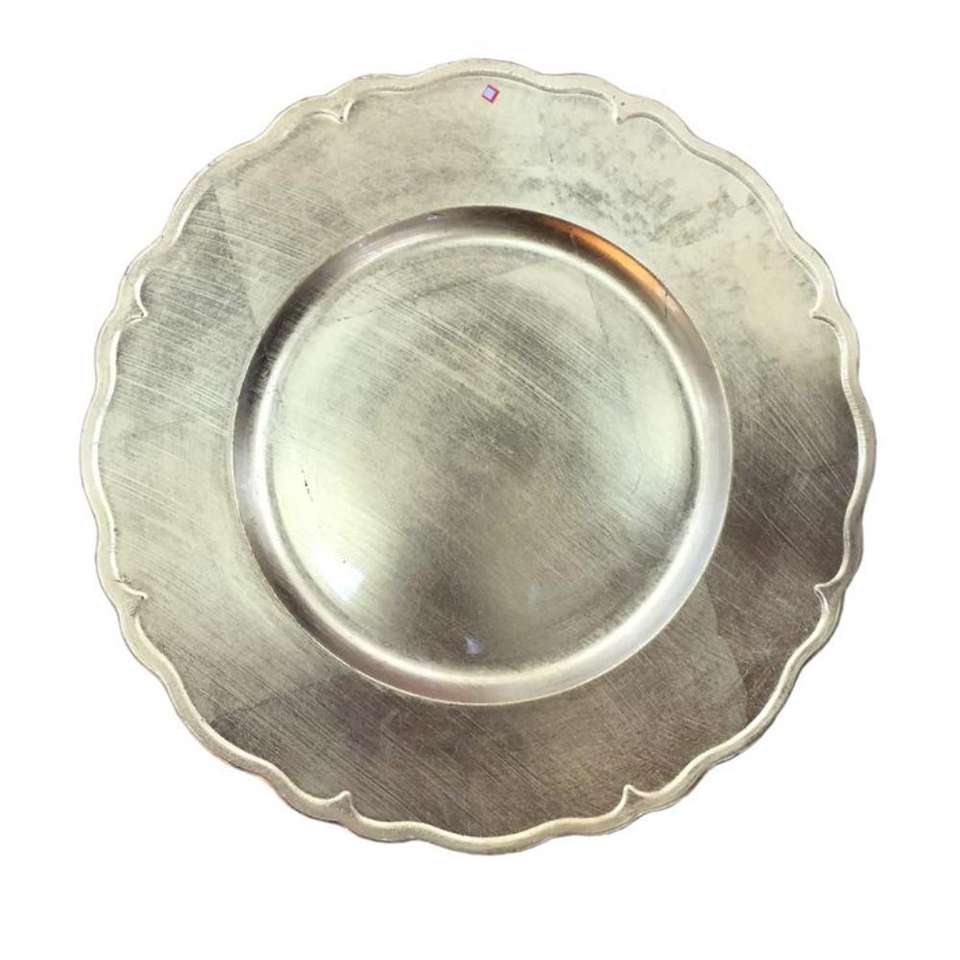 Assiette de présentation ronde en métal gravée, finition antique, pour hôtels et restaurants