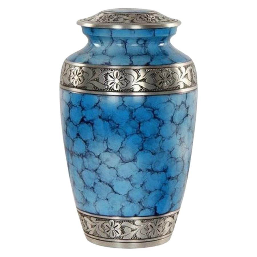 Engrave Floral Leaf Bend Blue Fire Adult Cremation Urn For Ashes Keepsake Handicraft Metal Urns Wholesale Price