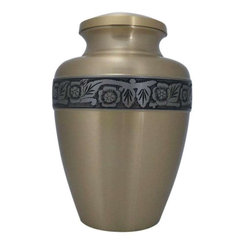 Brass Adult Cremation Urn Milano Red & Gold Hand Engraved Floral Band