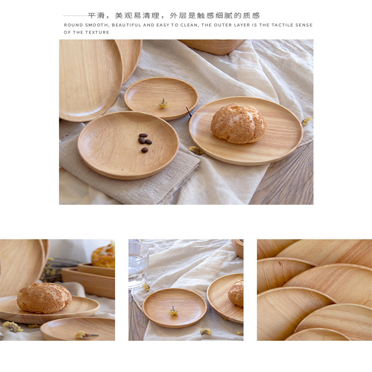 Engraved Logo Eco Friendly High Quality Rubber Wooden Round Plates Japanese Cake Sushi Dishes Serving Tray Kitchen Dinner plate