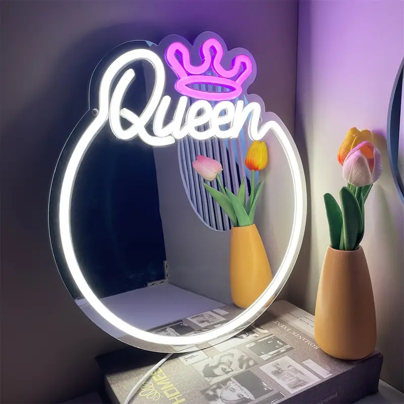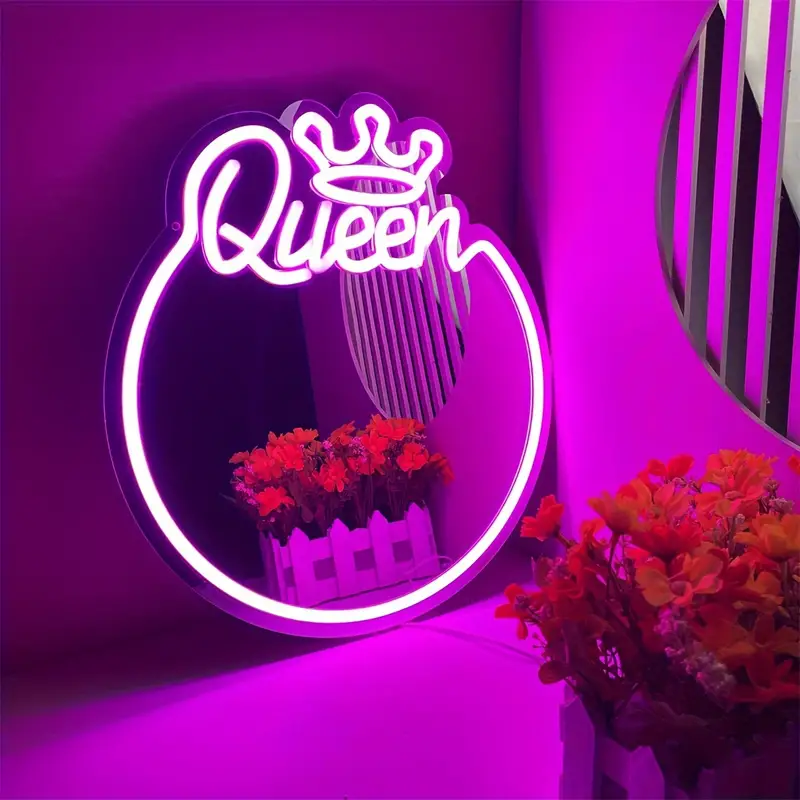 Enseigne au néon gravée de la reine du miroir, tenture murale LED à intensité variable pour la maison, le studio, le salon, le tatouage, la Saint-Valentin ou un cadeau d'anniversaire