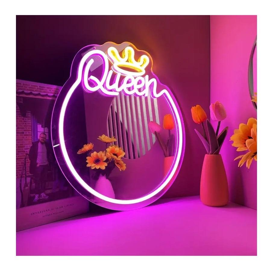 Enseigne néon Queen miroir gravé