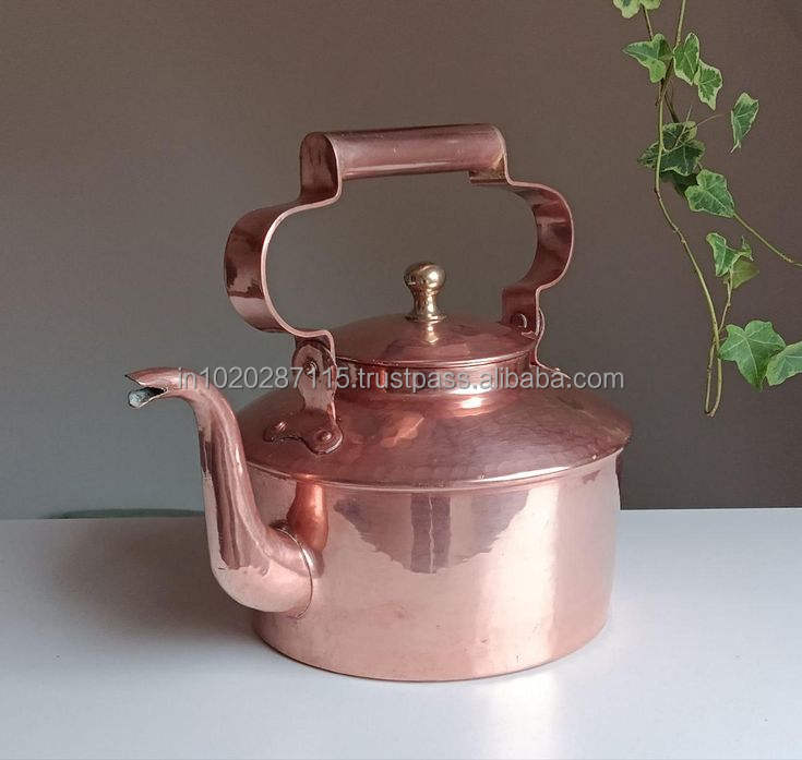 Bouilloire en cuivre gravé avec une finition lisse et des détails personnalisés adaptés à un cadeau d'héritage ou à une décoration antique