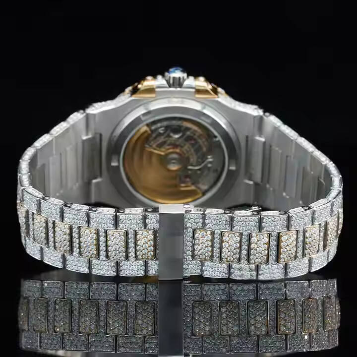 Montre automatique pour hommes Iced out avec VVS Clarity Moissanite Silver Gold Tone Le bracelet en acier inoxydable à la mode améliore le style