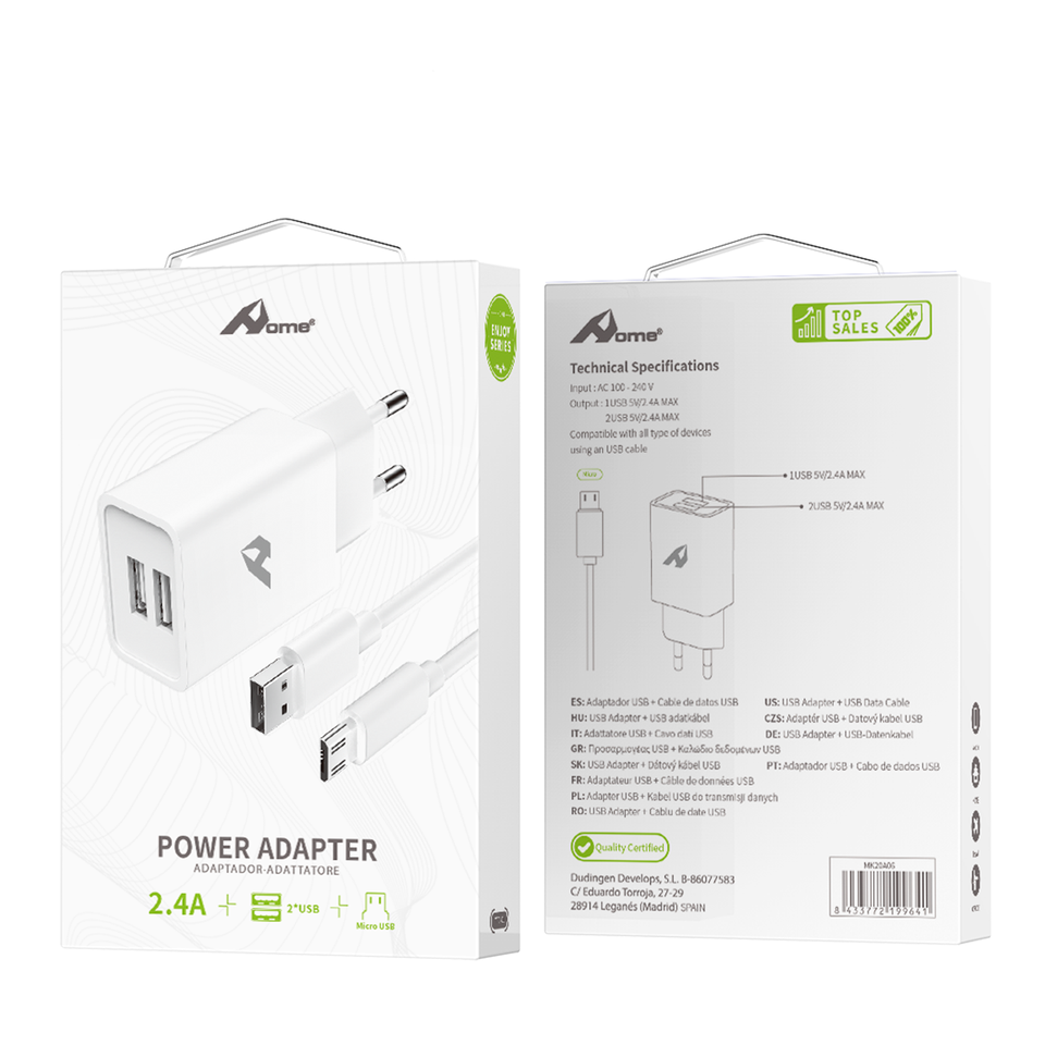 Profitez d'un câble USB vers Micro USB adaptateur réseau 2 USB x 5V/2.4A station de charge rapide avec Micro câble