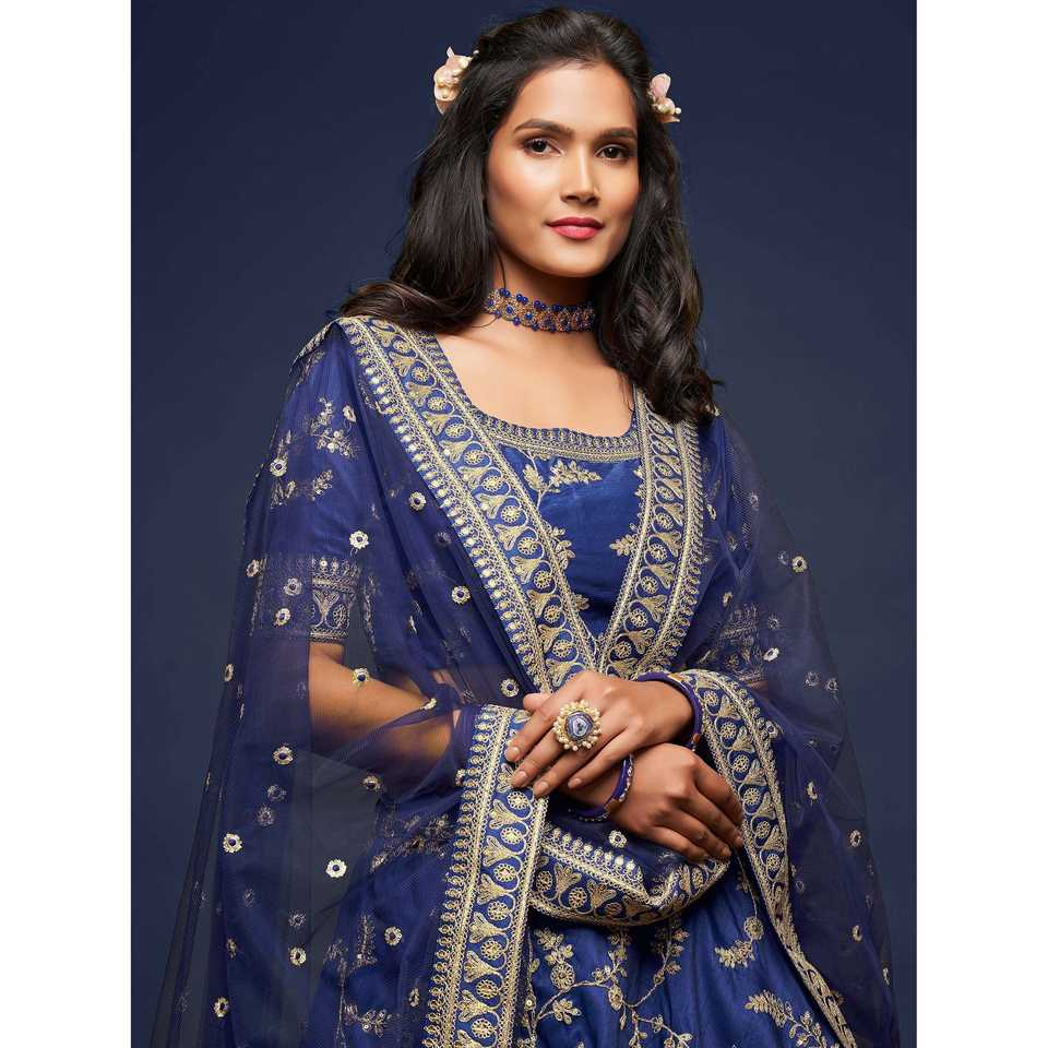 Blue Thread Embroidery Art Silk Wedding Dress Enjoyable Lehenga Choli with Unique Embroidery Work