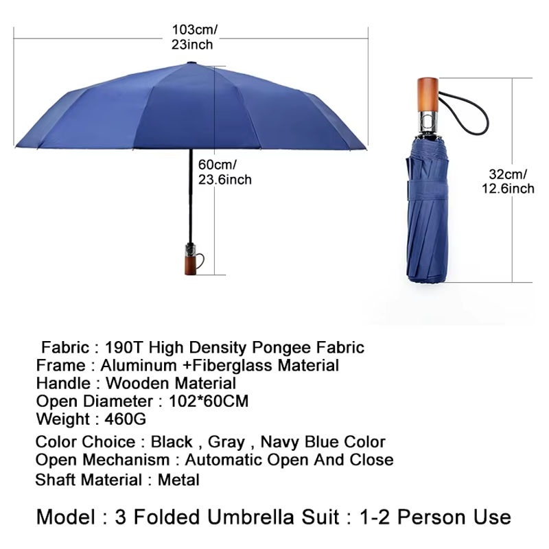 Name:Wooden Handle UV Protection Folding Umbrella With Logo Prints