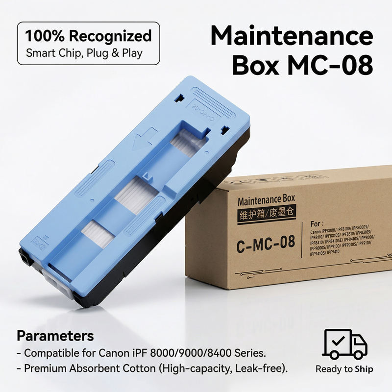 Boîte de maintenance Enlite MC08 pour Canon ImagePROGRAF IPF8000 IPF8100 IPF8400 IPF9000 IPF9400S, réservoir d'encre usagée avec puce