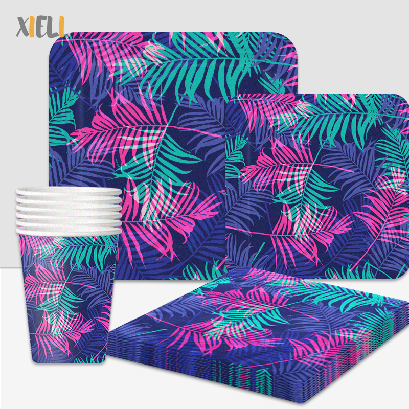 Ensemble D'Assiettes En Papier Jetables Écologiques Feuilles De Palmier Tropicales Colorées Ensemble De Vaisselle De Fête D'Été