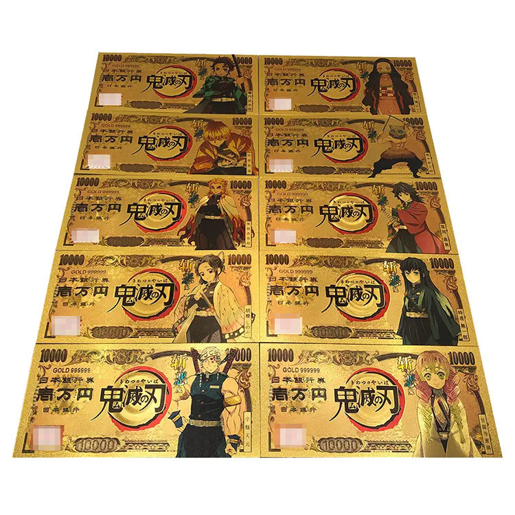 Ensembles de billets de banque en plastique personnalisé tous artisanaux japonais Anime en plaqué or 24 carats pour collection