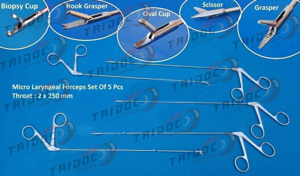 Ent Micro Laryngeal Forceps Lot de 5 Pcs Scissor Grasper Biopsy Cup Etc 2X250