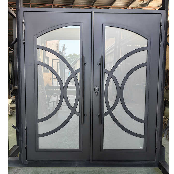 Portes d'entrée en fer forgé, design de conteneur, placard, 3 CNC, aluminium brut, Shanghai 42X96 en Algérie, décoration forgée, porte battante en fer