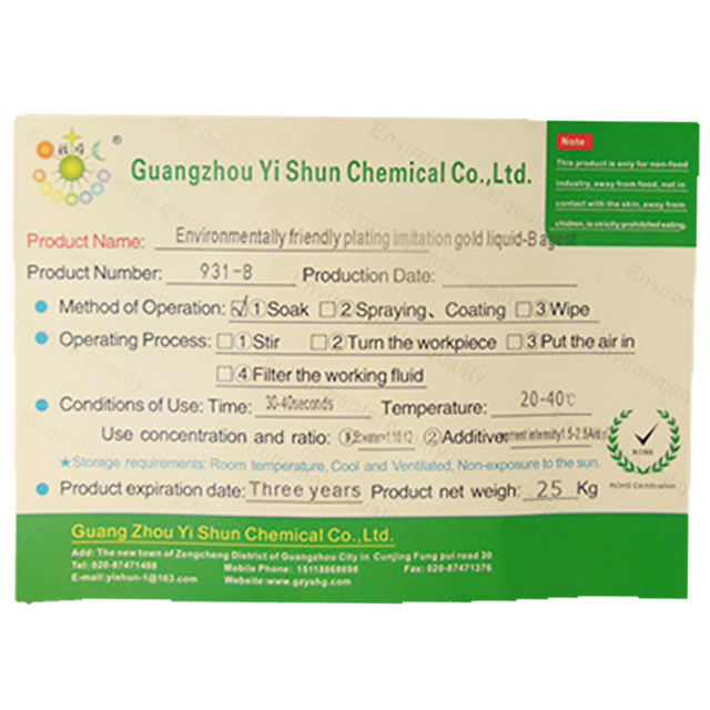 Solution de placage à l'or imitation cuivre environnemental solution de placage à l'or imitation fer solution de placage à l'or imitation