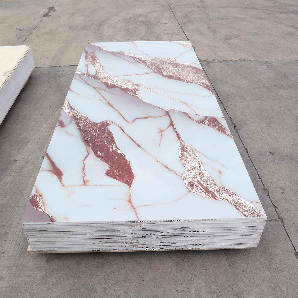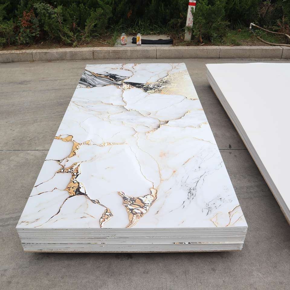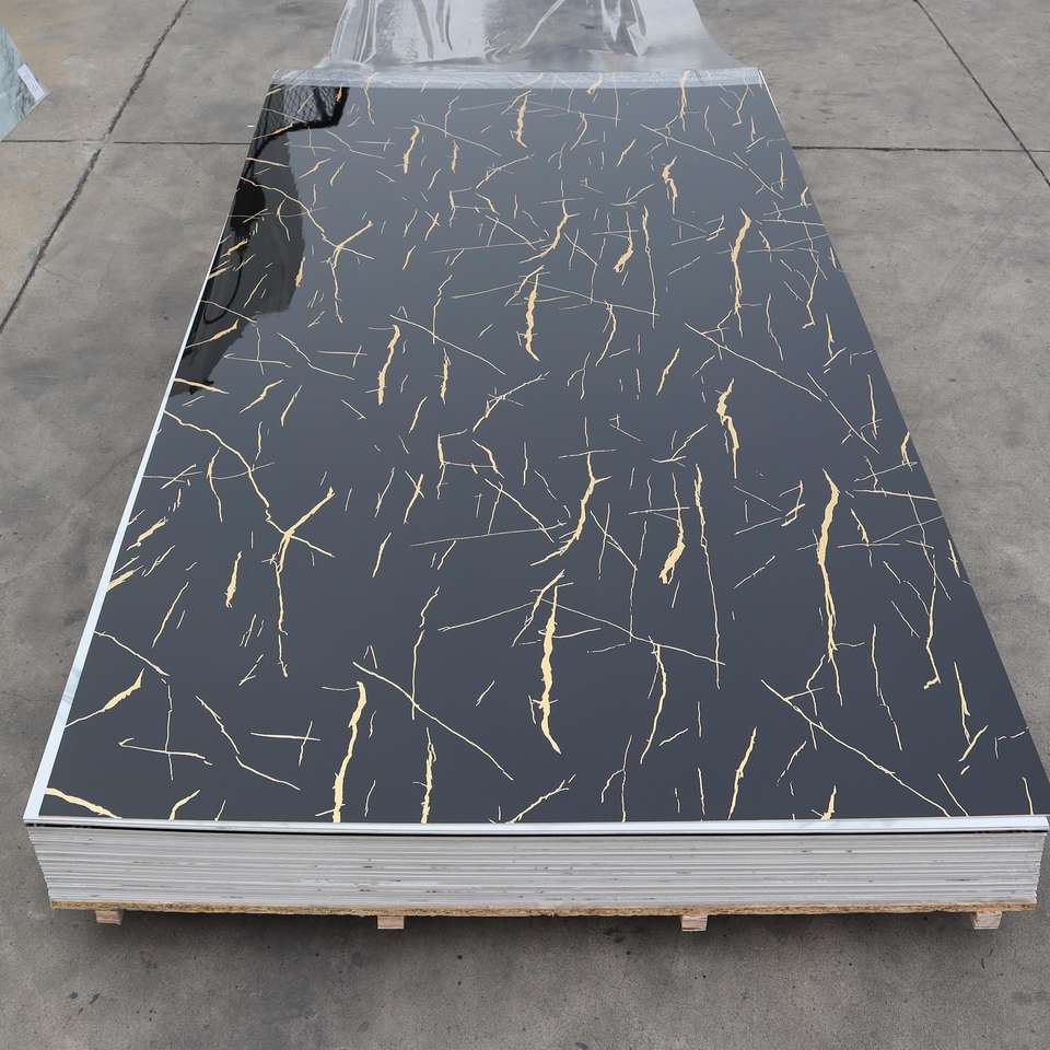 Panneau mural SPC résistant à l'humidité, ignifuge, avec motifs dorés et marbrés pour la décoration murale intérieure