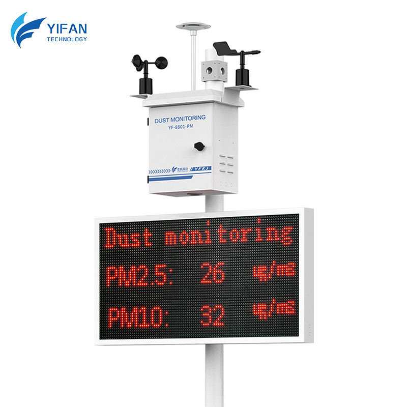 Moniteur environnemental | PM2.5, PM10, TSP, Température et humidité, Vitesse et direction du vent, Pression atmosphérique, Affichage LED extérieur