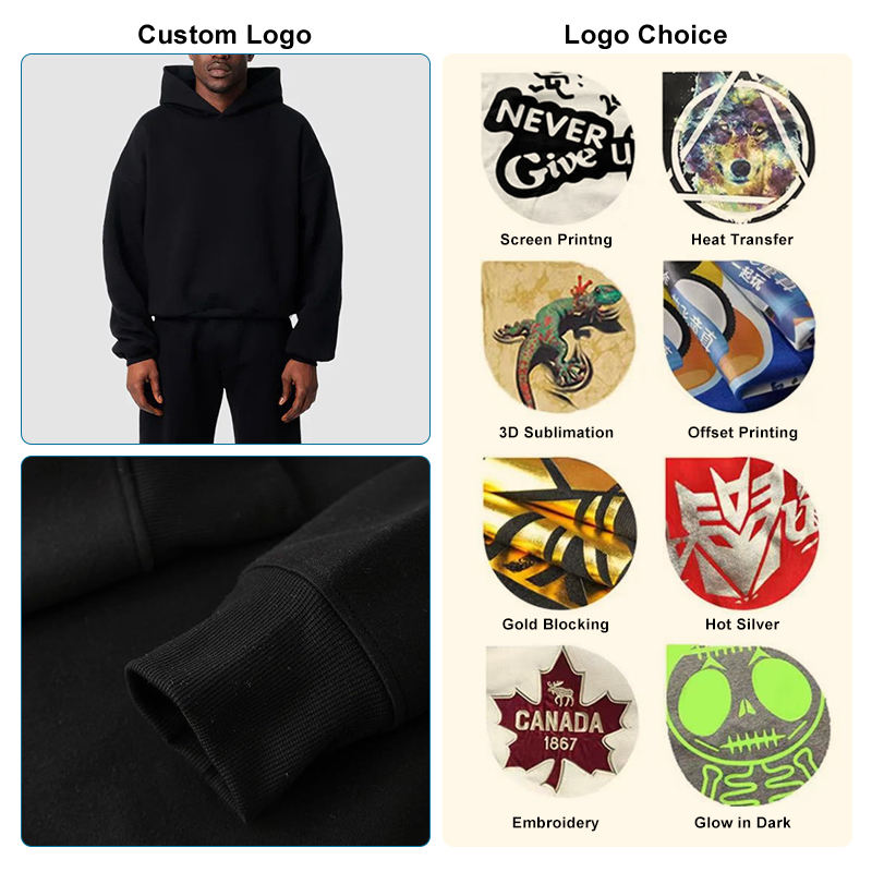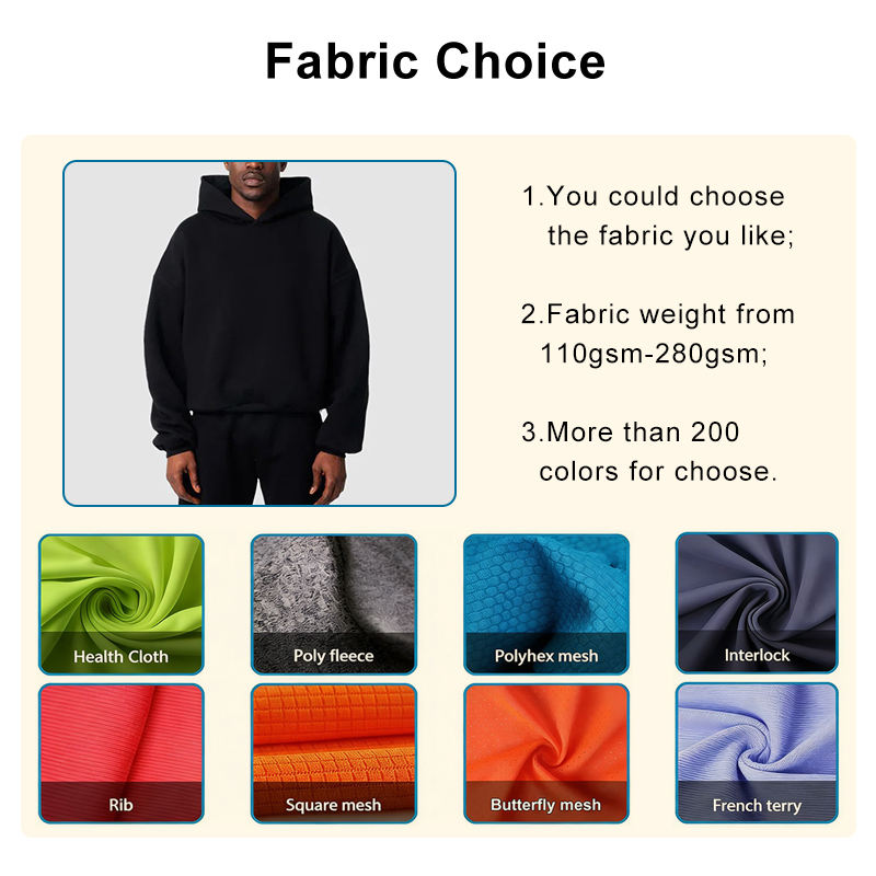 Sweat à capuche unisexe premium en tissu d'hiver écologique, French Terry, poids lourd, coupe courte, coupe-vent, respirant, uni