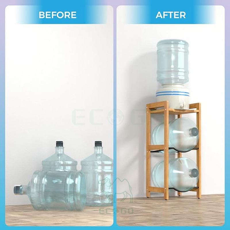 Support de distributeur d'eau en bambou de bonne qualité écologique avec organisateur à 3 niveaux, design moderne pour accessoires de salon