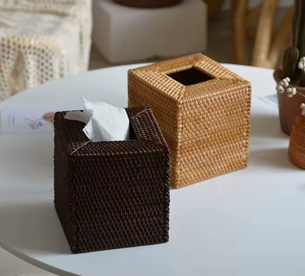 Couverture de boîte à mouchoirs en rotin carré vietnamien de haute qualité écologique en gros porte-mouchoirs en osier