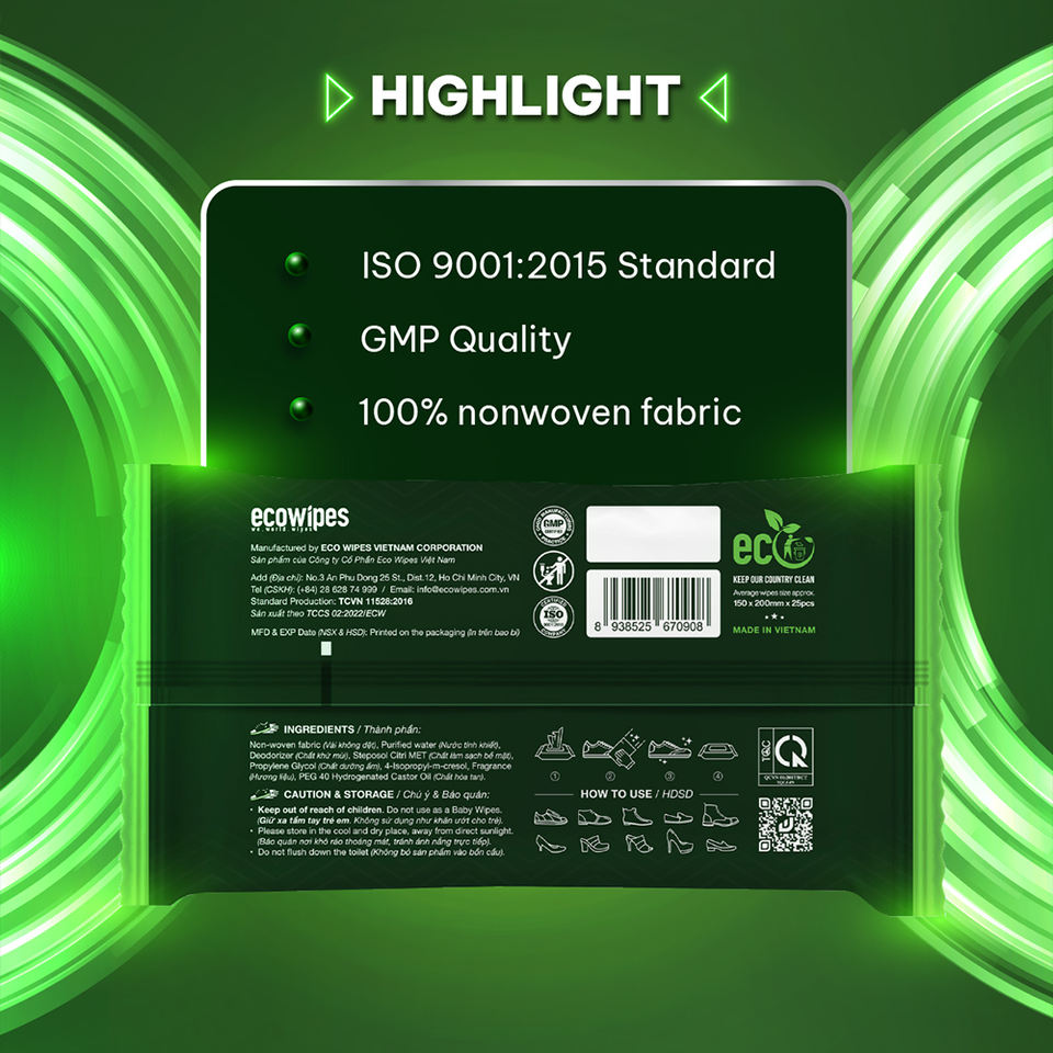 Lingettes de nettoyage de chaussures écologiques à action rapide avec une formule puissante pour une élimination efficace de la saleté.