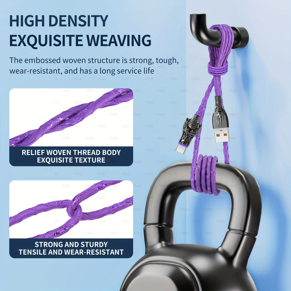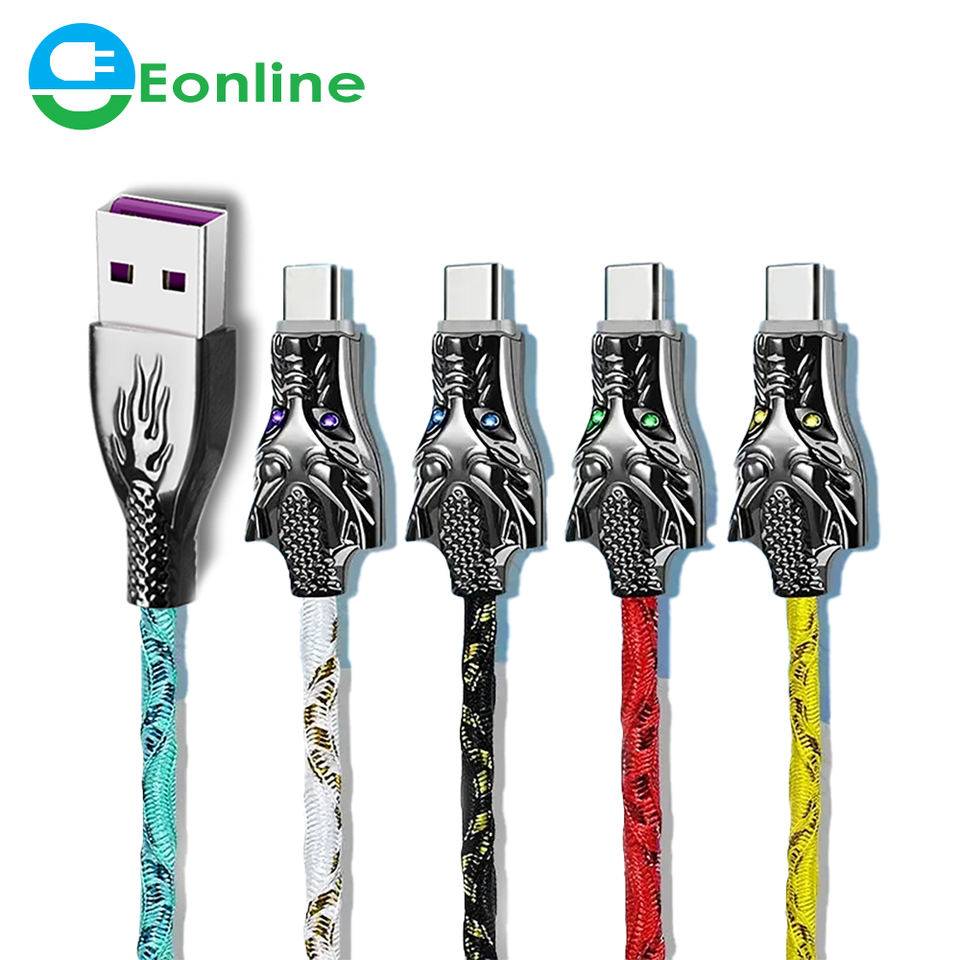 Eonline 6A 66W LED Light-Up Dragon Design Câbles de charge USB-C Synchronisation rapide et charge pour Samsung Xiaomi Vivo OPPO Redmi HTC Sony
