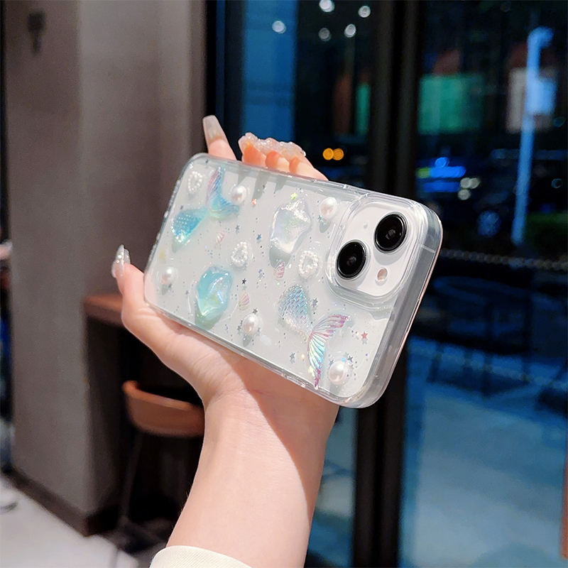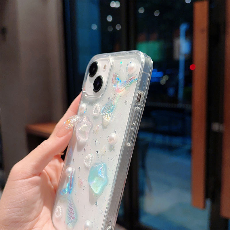Coque transparente en époxy 3D sirène étoile perle queue de poisson pour iPhone 17 Pro Max, étui souple transparent à paillettes pour 16 Plus 14 13 12 11 15