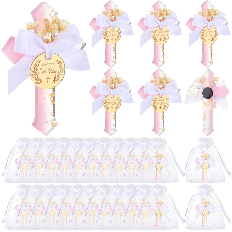 Aimants de réfrigérateur en époxy en forme de croix, croix de première communion avec fleur, souvenirs chrétiens, cadeau pour baptême, baptême, fête de naissance