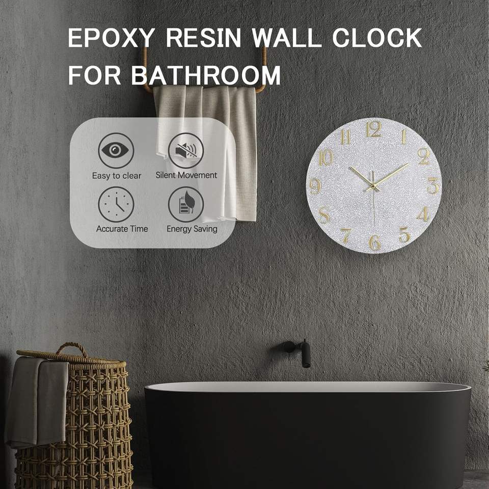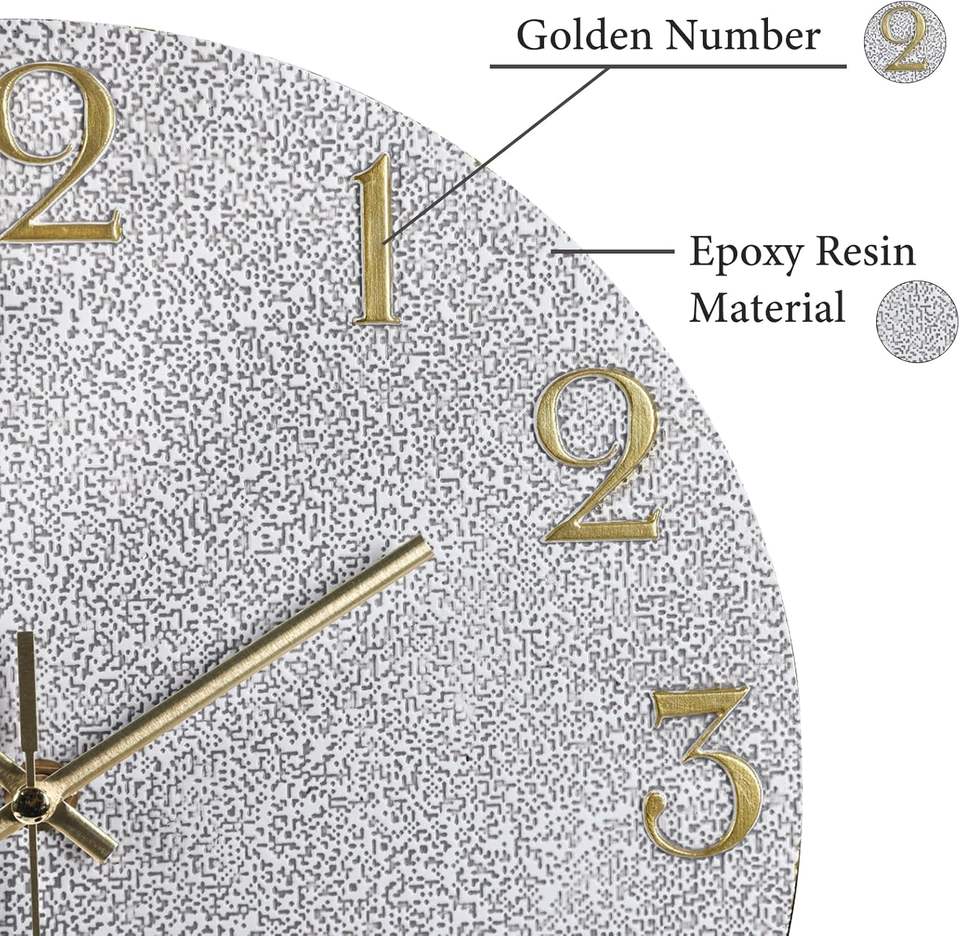Horloges murales modernes silencieuses à piles en résine époxy - Or noir pour la chambre à coucher, le salon, la salle de bain, la cuisine