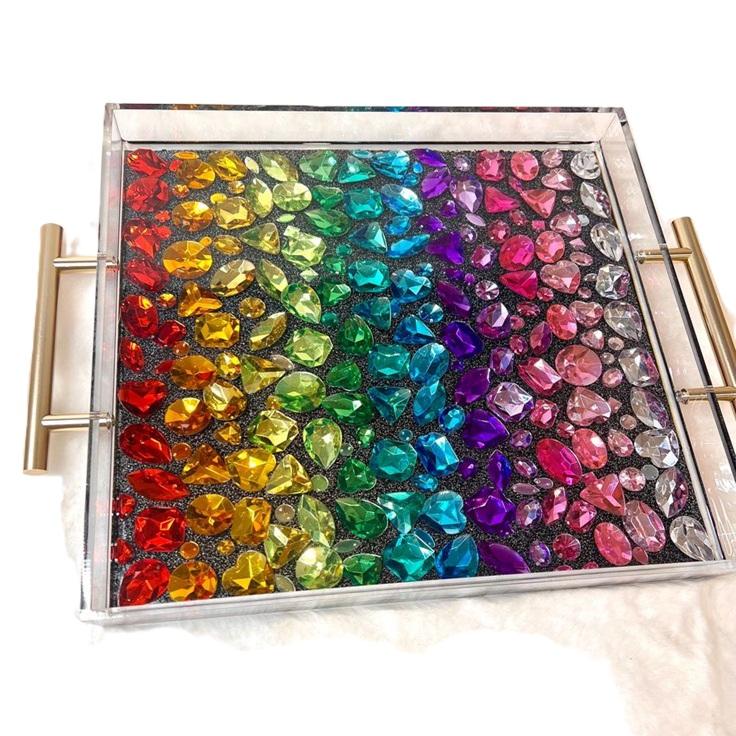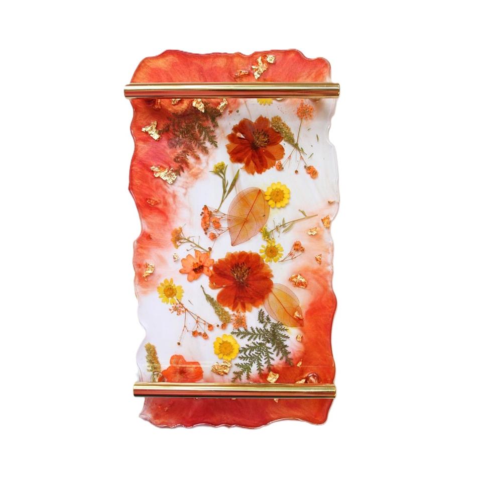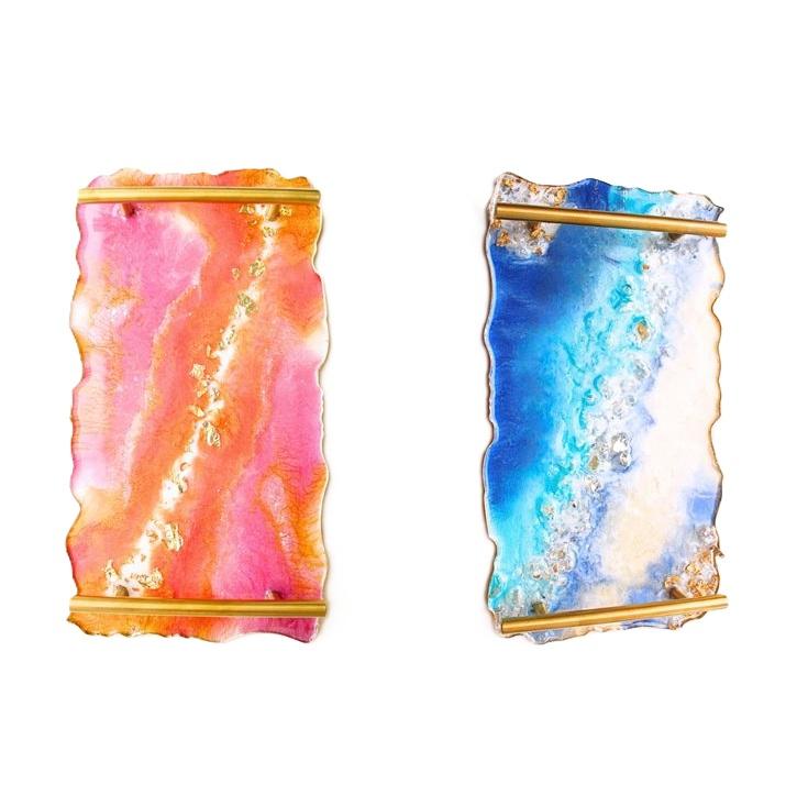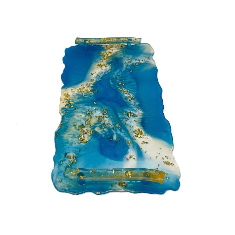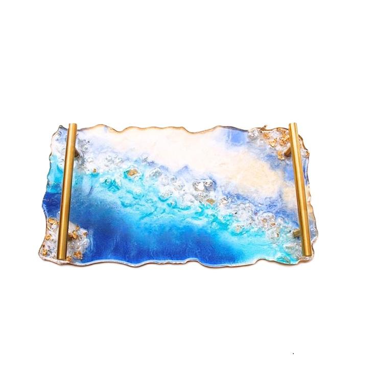Plateau de service perlé en résine époxy avec bois naturel et vagues océaniques Plateau en résine époxy fait main avec logo personnalisé pour décoration de table