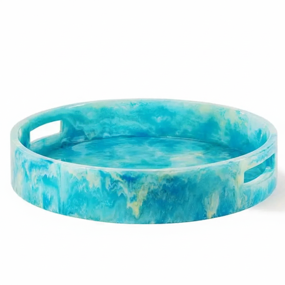 Plateau de service en résine époxy écologique multifonctionnel personnalisable avec bords floraux pour mariages, Ramadan, Eid, design moderne