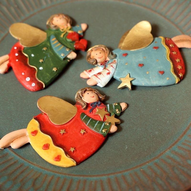 Epoxy Resin Folk Art Sculpted Vintage Christmas Angel Girl Figurine Refrigerator Magnet Decoration
