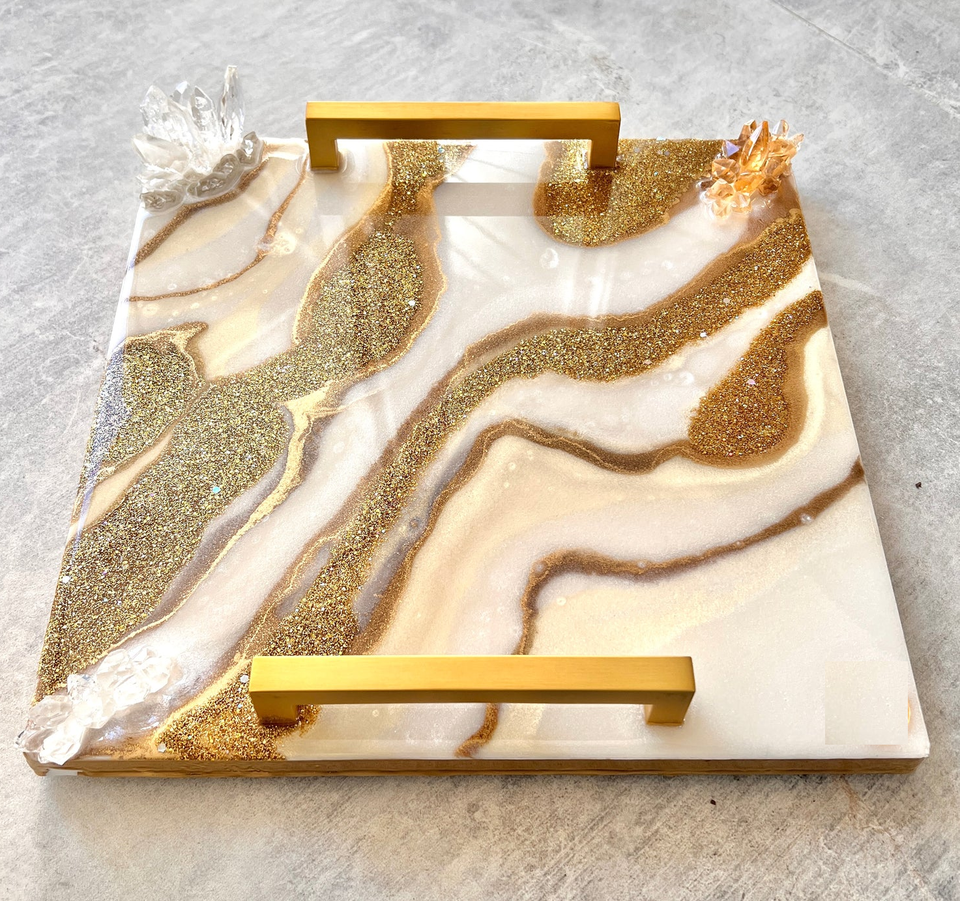 Plateau de service en résine époxy plateau en résine décoratif fait à la main plateau de service organisateur parfait