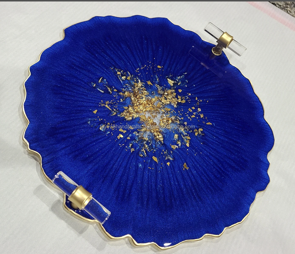 Plateau de service en résine époxy avec poignée en feuille d'or en métal Ustensiles de cuisine pour hôtels et restaurants par Tayyab Handicraft