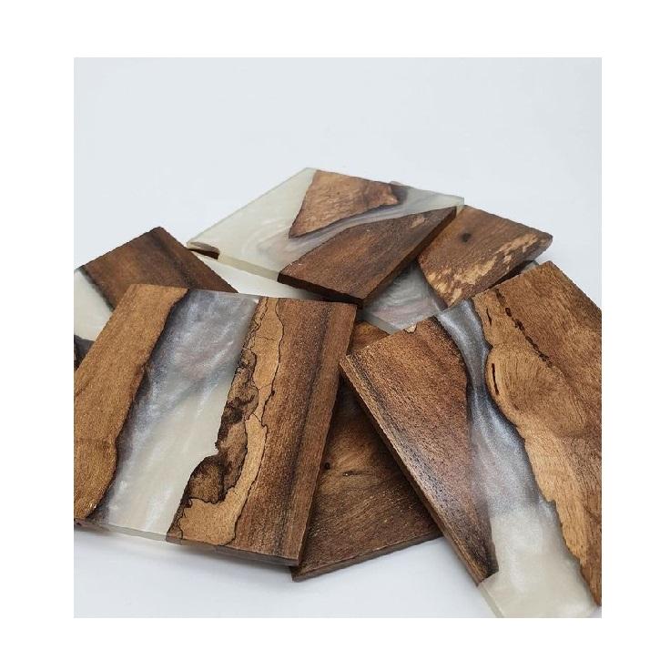 Epoxy Resin Square coaster and Wood Stand Eco Friendly Luxury Solid Wood and Epoxy Resin Top Quality Customize Square Stone